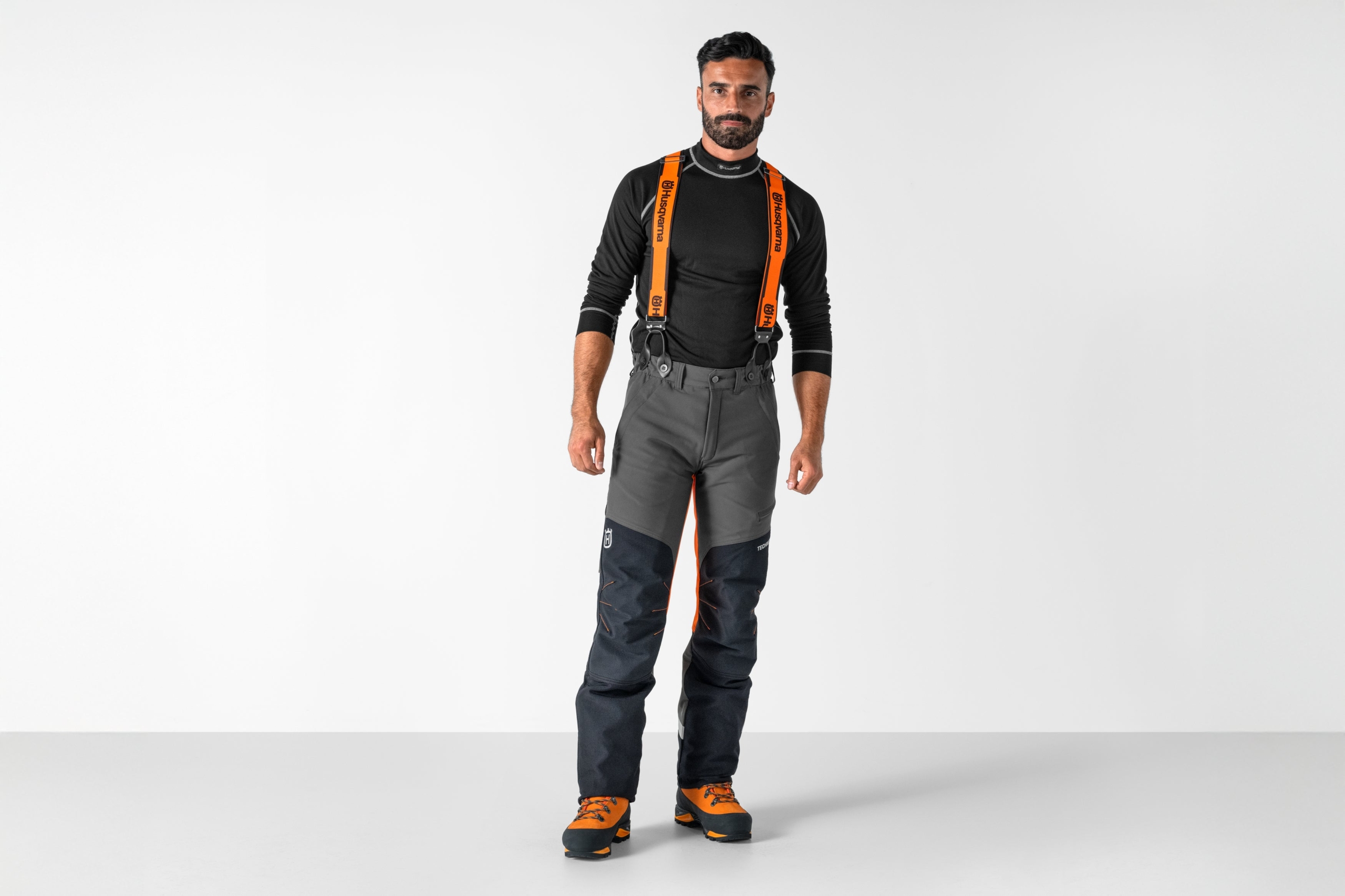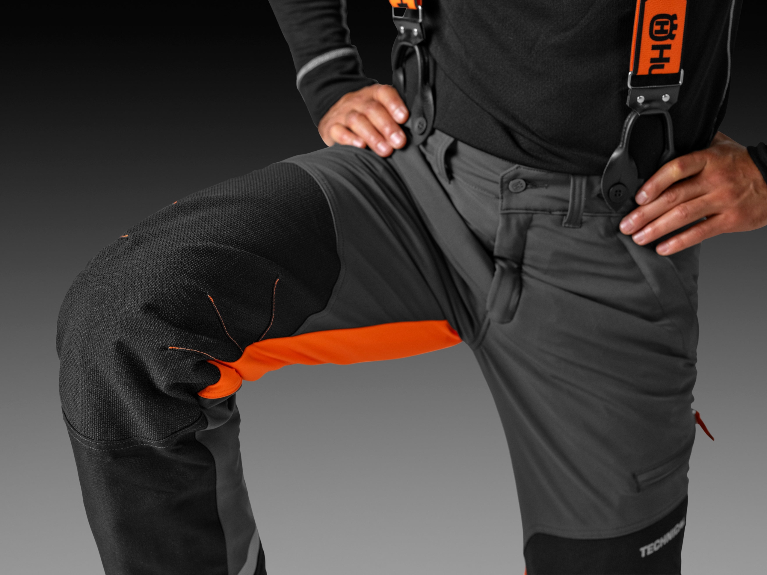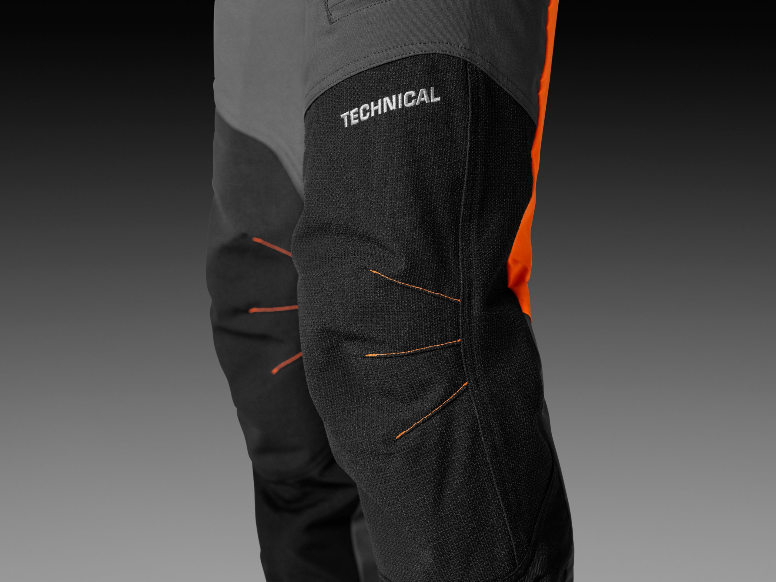 Husqvarna Technical motorzāģa bikses ir izstrādātas darbam ar motorzāģi profesionālos mežizstrādes un mežsaimniecības apstākļos, nodrošinot augstu komforta līmeni, izturību un uzticamu aizsardzību ilgām darba dienām skarbā vidē.