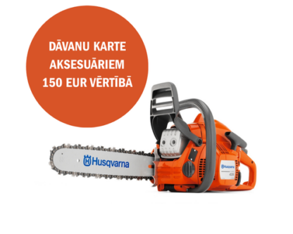 * DĀVANU KARTE 150 EUR VĒRTĪBĀ HUSQVARNA AKSESUĀRIEM. Jaunās paaudzes viegls un efektīvs, daudzpusīgs motorzāģis, ideāli piemērots tiem, kas meklē izteikti viegli iedarbināmu un ļabi manevrējamu zāģi. Viegli iedarbināt arī raujot lēnāk. Plānāka materiāla zāģa korpuss un viegli uzliekams tvertnes vāciņš. Aprīkots ar X-Torq® dzinēju, kas nodrošina zemāku degvielas patēriņu un samazinātu emisijas līmeni. Smart Start®, degvielas sūknis un automātiskās atgriezes slēdzis vieglākai iedarbināšanai. Ar zāģi ir ērtāk rīkoties, pateicoties ķēdes spriegotājam, kas ļauj nospriegot ķēdi bez jebkādu instrumentu izmantošanas.