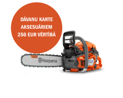 * DĀVANU KARTE 250 EUR VĒRTĪBĀ HUSQVARNA AKSESUĀRIEM. Jaudīgs, izturīgs un viegli manevrējams 50 cm3 motorzāģis gāšanai, atzarošanai un garināšanai, darbos ar maziem un vidējiem kokiem. Slaidais motorzāģa dizains un inovatīvo īpašību kopums, padara to par efektīvu, uzticamu un komfortablu instrumentu lietošanā. Pateicoties jaunākajai AutoTune™ tehnaloģijai, motorzāģis nodrošina automātisku dzinēja regulāciju, kompensē dažādu degvielu, augstuma virs jūras līmeņa, mitruma un temperatūras atšķirības, kā arī gaisa filtra aizsērēšanu. Šis zāģis ir īpaši piemērots visa veida saimniecības, kā arī pilna laika mežizstrādes darbiem.