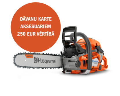 * DĀVANU KARTE 250 EUR VĒRTĪBĀ HUSQVARNA AKSESUĀRIEM.  Šis modelis aprīkots ar roktruru apsildi. Jaudīgs, izturīgs un viegli manevrējams 50 cm3 motorzāģis ar lielisku veiktspēju un griešanas kapacitāti. Izmantojams gāšanai, atzarošanai un garināšanai, darbos ar maziem un vidējiem kokiem, kā arī prasīgos koku kopšanas darbos. Slaidais motorzāģa dizains un inovatīvo īpašību kopums, padara to par efektīvu, uzticamu un komfortablu instrumentu lietošanā.