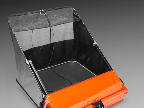 Навесной мусоросборник/травосборник для эффективной уборки газона. Регулировка высоты. Оператор может опустошить травосборник, не вставая с сиденья.