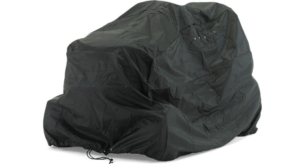 Полноразмерный чехол для трактора. Изготовлен из износостойкого нейлона. Стягиваемый шнур у нижнего края, вентиляционные отверстия. Накидка к тракторам встроенным травосборником.